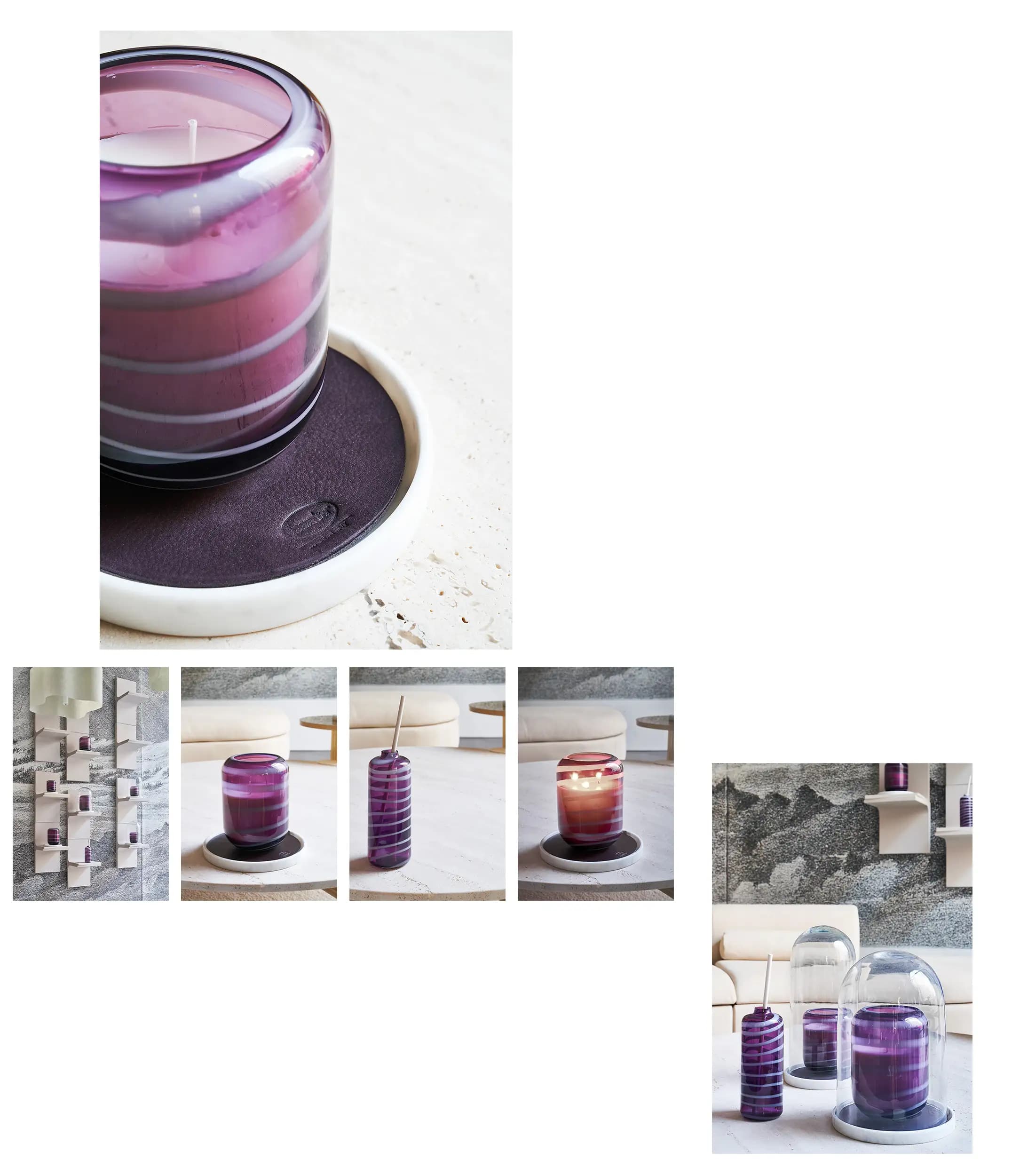 Thanks to the preciousness of this material, once the wax is exhausted, each item in the collection can live a new life by becoming an elegant and extremely versatile small vase.