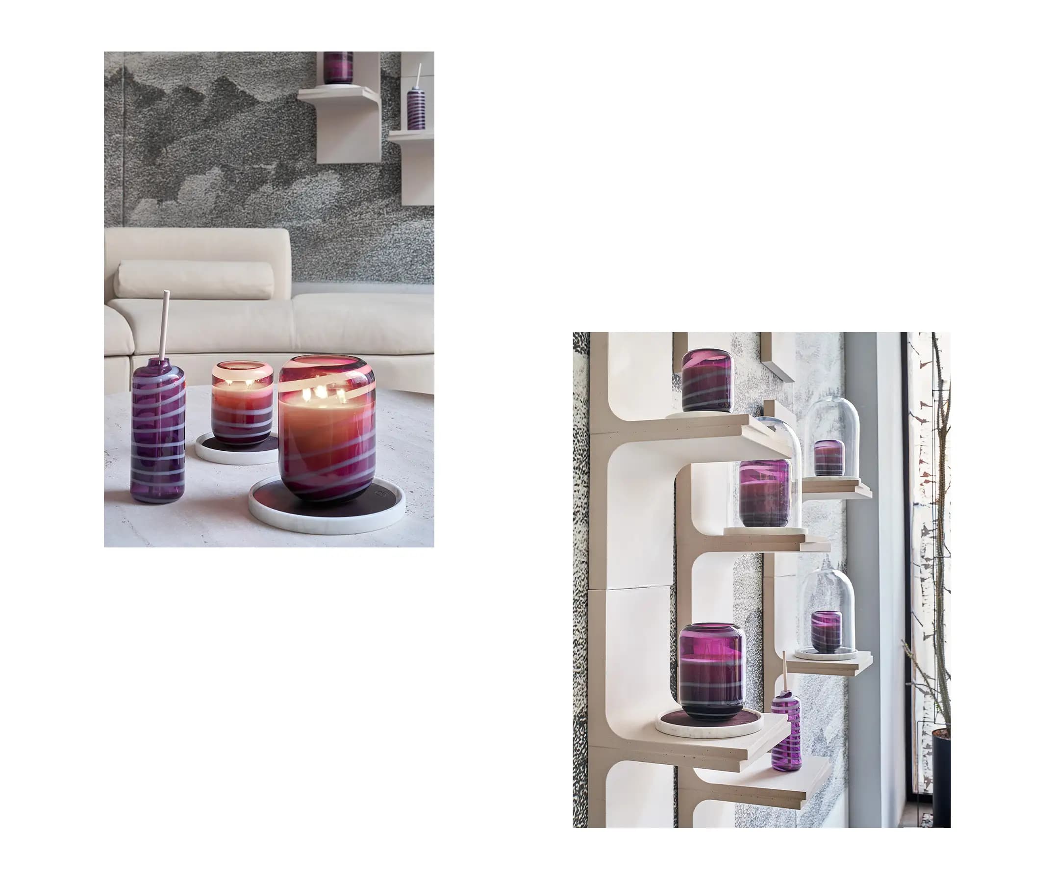 The colorful charm of the scented Murano glass candles and the Baxter-signed fragrance diffusers are a joyful celebration of the most intimate and cozy atmosphere, of who we are and where we long to return.