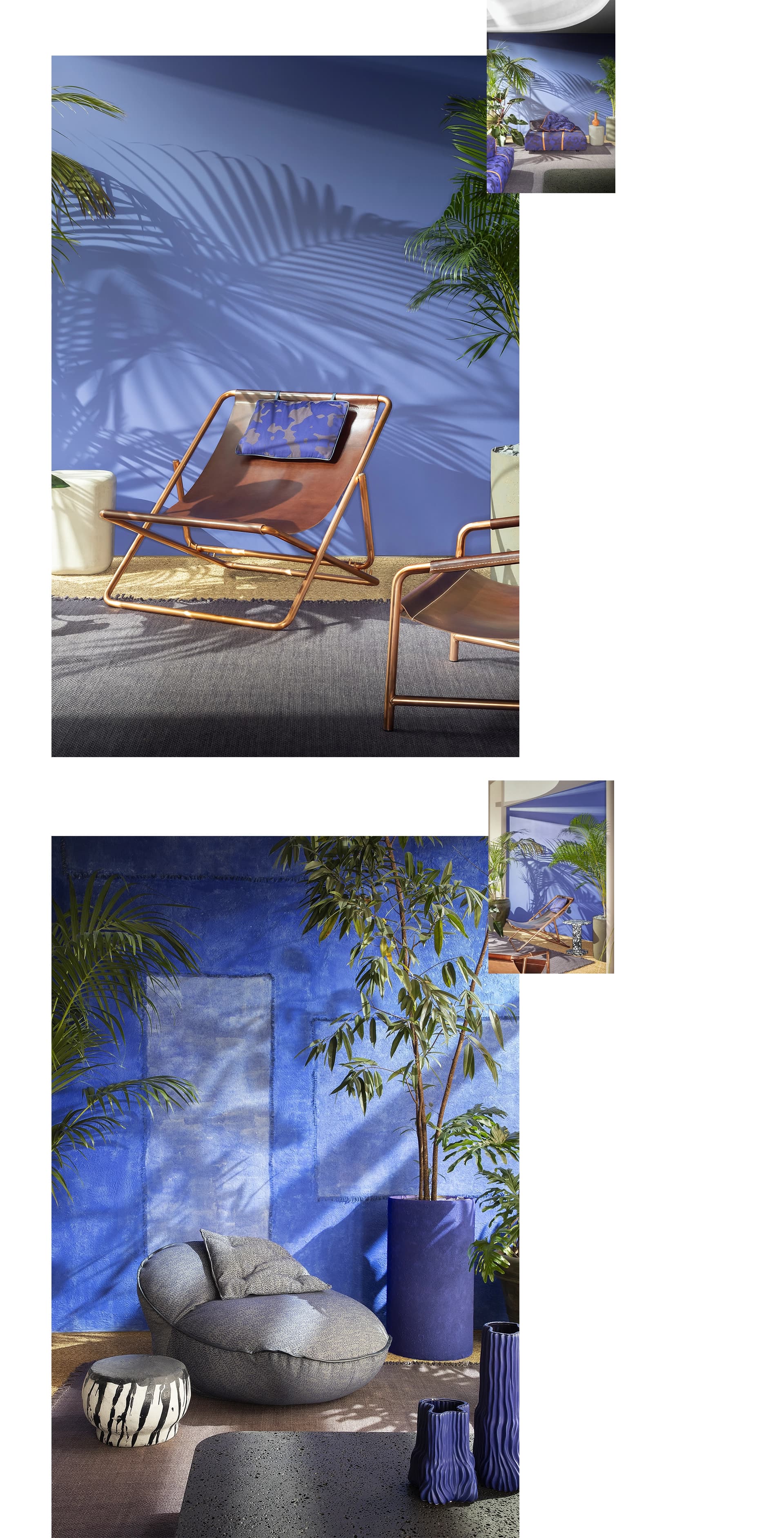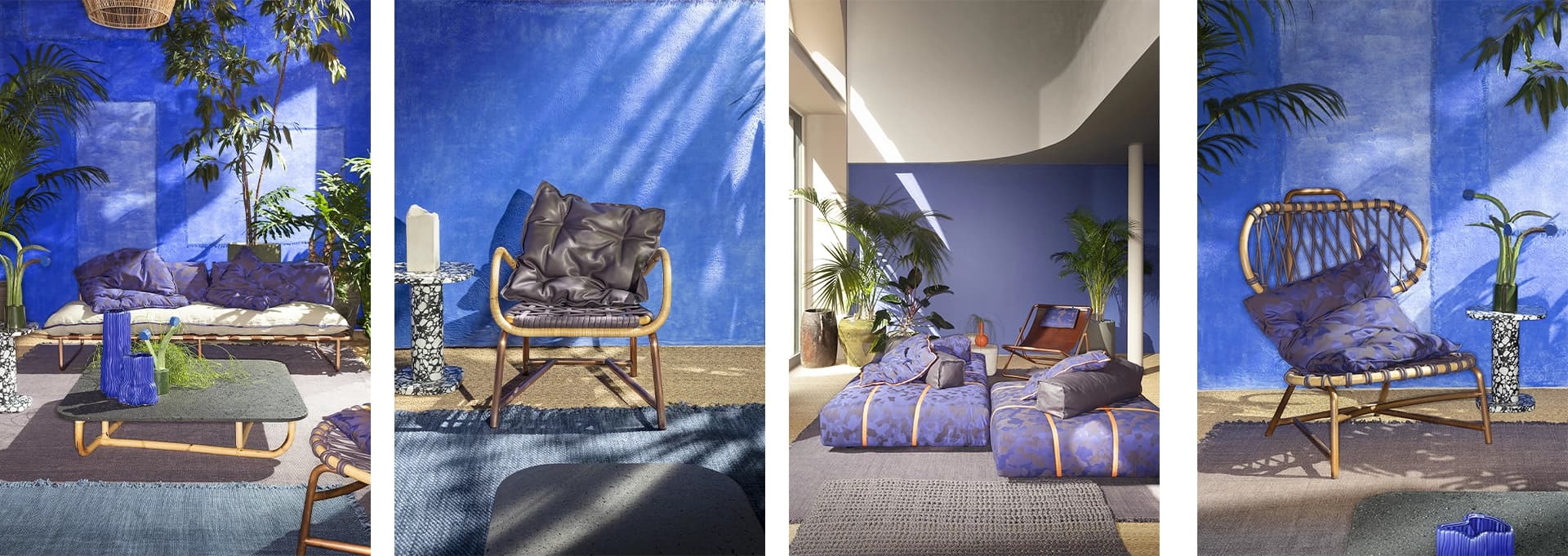 Protagonista Paola Navone, che con le sue creazioni open-air modula lo spazio con leggerezza e allo stesso tempo tinge gli ambienti di blu, il suo colore di riferimento. Occasione perfetta per presentare anche il nuovo tessuto outdoor di Baxter: il Camo Blu. Un camouflage di tinte – dal blu ardesia scuro al mezzanotte – che rievoca il continuo mutamento di cieli notturni.