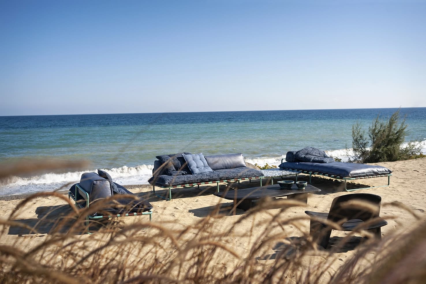 There is the desert in the Arizona sofa, with its agile structure and nomadic vocation, and there is the ocean, where the Panama Bold outdoor seating system floats like islands, with a core of Okoumé, a particularly light and weather-resistant African wood.